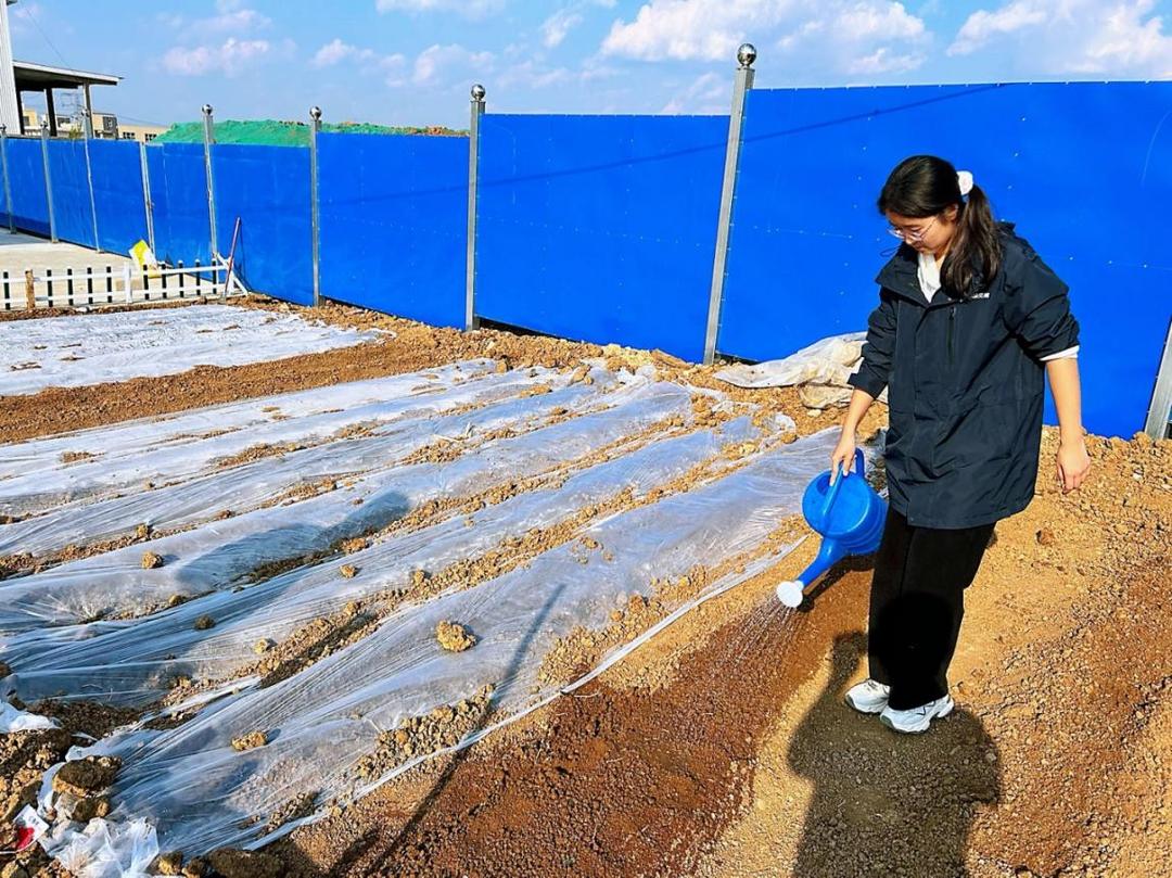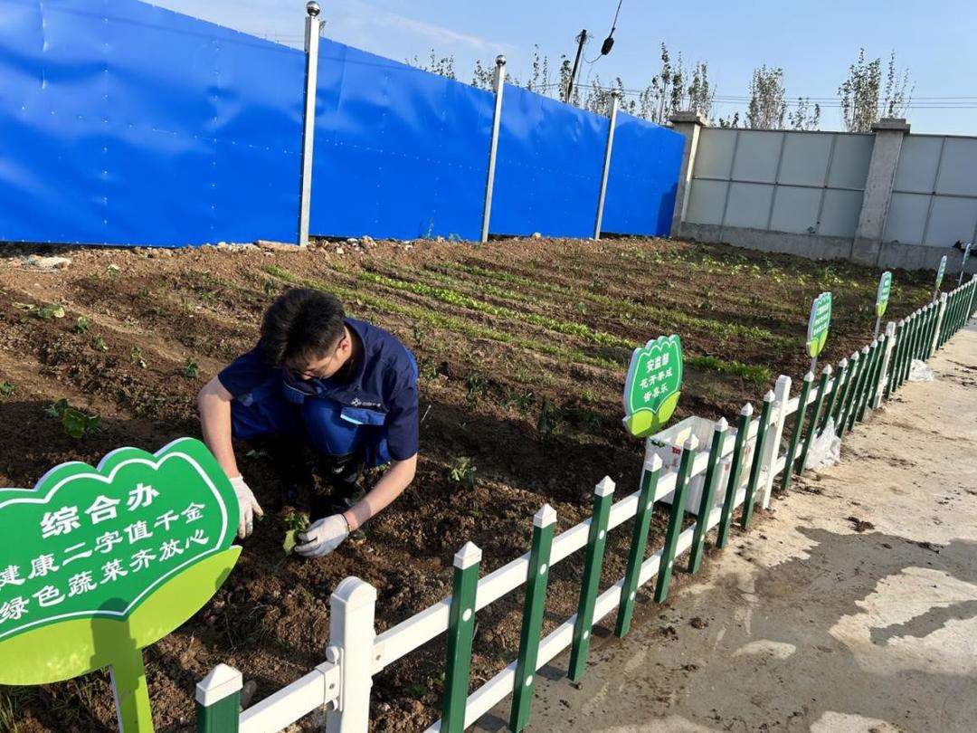 为了更好地管理和维护这片绿色空间,项目部还在菜园内设置了清晰的标识牌。每一块菜地前,都竖立着小巧精致的标识牌,上面详细标注了负责维护的部门、各部门的寄语,既方便了日常的灌溉、施肥等作业,也增强了团队成员的责任感与归属感,财务部的小姜笑着说:“真好,以后别说我们只会算数、敲键盘了,种菜我们也行!”