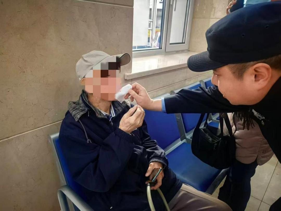 “老人家,您别着急,我们来帮您!”10月21日10时许,道外分局东莱派出所巡逻车组民警王柯权、孙旭晨巡逻至太古街附近时,发现一位老人摔倒在路边,嘴部受伤流血。民警立即上前,小心将老人扶起,并驾驶警车将老人带回派出所,迅速为老人做了初步伤口清理,并安抚其情绪,有效缓解了老人的疼痛与不安。随后,民警与老人的女儿取得联系,并向其说明情况。不一会儿,老人的女儿赶到派出所,将老人送往医院进一步治疗。“多亏你们及时救助,给我父亲做了紧急处理,真是帮大忙了!”临别时,老人的女儿对民警的及时救助和暖心照料连声道谢。