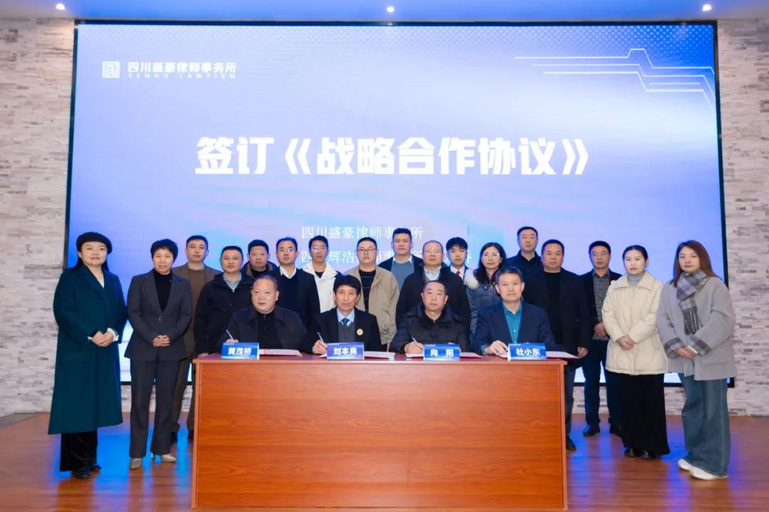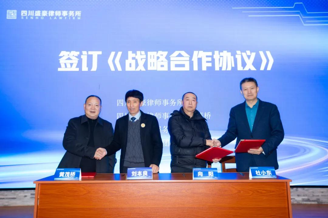会议核心环节,四川盛豪律师事务所与四川辉浩律师事务所、叙永县法律服务协会、唐朝老窖(集团)有限公司共同签订《战略合作协议》,四方携手构建“律所+协会+企业”的多元协同合作模式,为后续资源共享、优势互补奠定坚实基础。