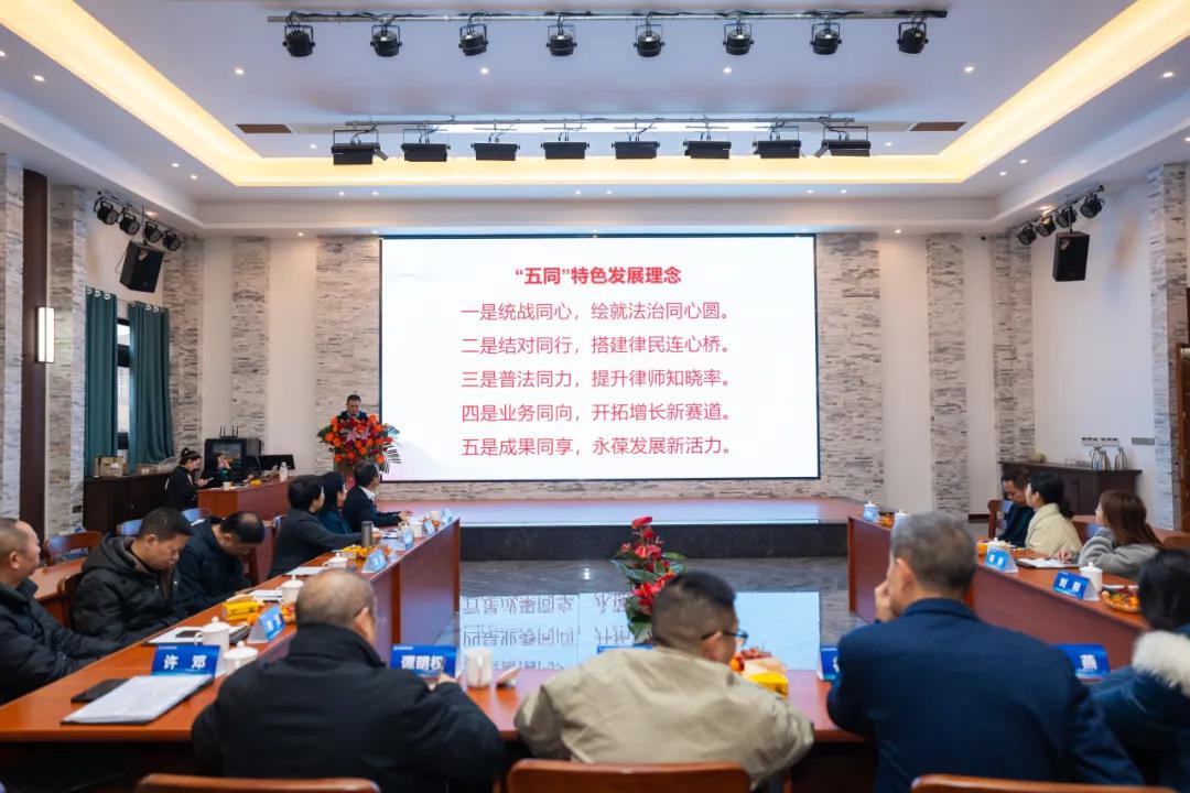 省律协区域协调中心副主任、盛豪监事会监事长刘波主持会议,叙永县司法局副局长吴术青,叙永县公共法律股副股长王燕,省律协副监事长、盛豪执董会主任杜小东及律所“四会一部一中心”班子成员、合伙人,唐朝老窖董事长刘本良,叙永县多家律所及法律服务所负责人、青年律师代表等出席会议。