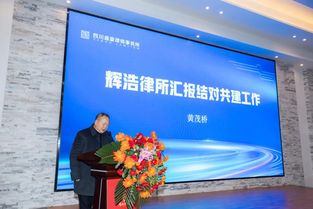 会上,刘波代表盛豪律所汇报结对共建工作推进情况,系统梳理过往合作成果与实践经验;四川辉浩律师事务所主任黄茂桥随后汇报共建工作进展,分享双方协同发展中的探索与收获。