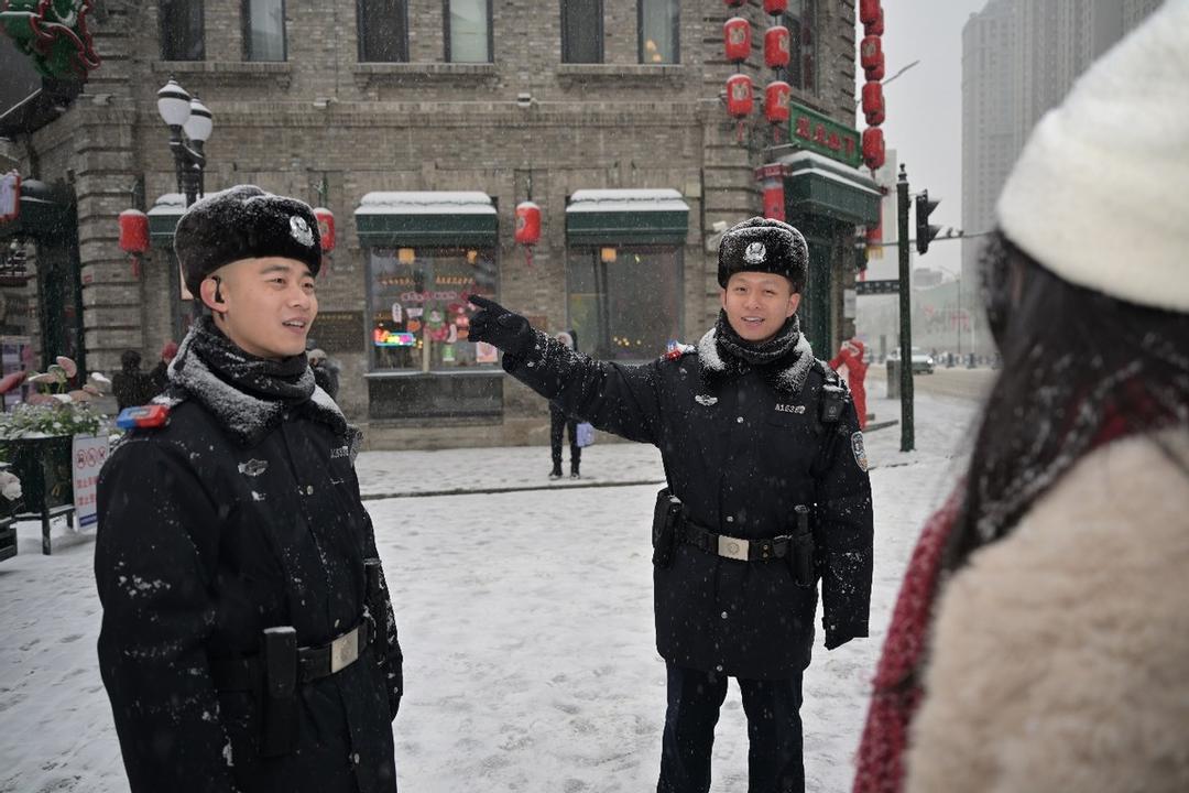 共工新闻社12月24日电(朱善永 高圆 华钧松)12月23日凌晨,天空中飘起了纷纷扬扬的雪花,大雪点缀装扮了整个城市。哈尔滨市公安局道外分局以雪为令,全警动员、昼夜奋战,持续加强交通协管、路面巡逻防控、景点秩序维护等工作力度,积极应对降雪天气,迅速落实各项工作措施,全力保障人民群众生命财产安全和旅游秩序平稳。