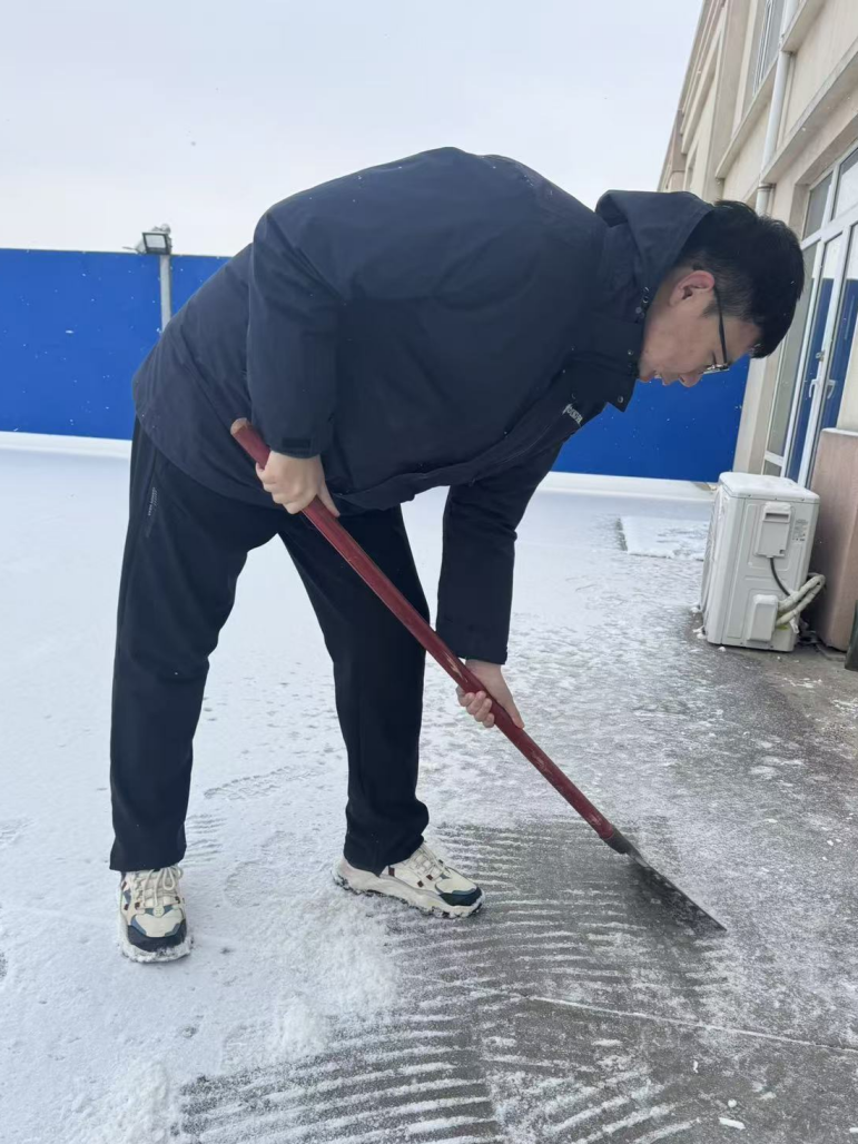 清晨,众人扫完雪,纷纷回室取暖。忽闻窗外铲声又起,原来是中交一航局四公司吉林项目部王赫独自弓身,正仔细清理门廊边被人踩实的薄冰。“还没扫够么?”我笑问。他抬头呵出一团白雾,憨厚一笑:“这儿化雪成冰,怕人滑着。‘管业务就得管安全’嘛。”我心头一暖。没有职责要求他这样做,没有考核为此加分。他只是默默俯身,将那处被人忽略的危险,一锹一锹,耐心铲去。雪终会消融,冰终会化水。但那个弓着的身影,和那句朴素的“怕人滑着”,却像一粒火种,落进2025年的冬天里。原来温暖常在“多余”处,当所有人都觉得足够时,总有人愿为他人,多看一眼,多铲一锹。