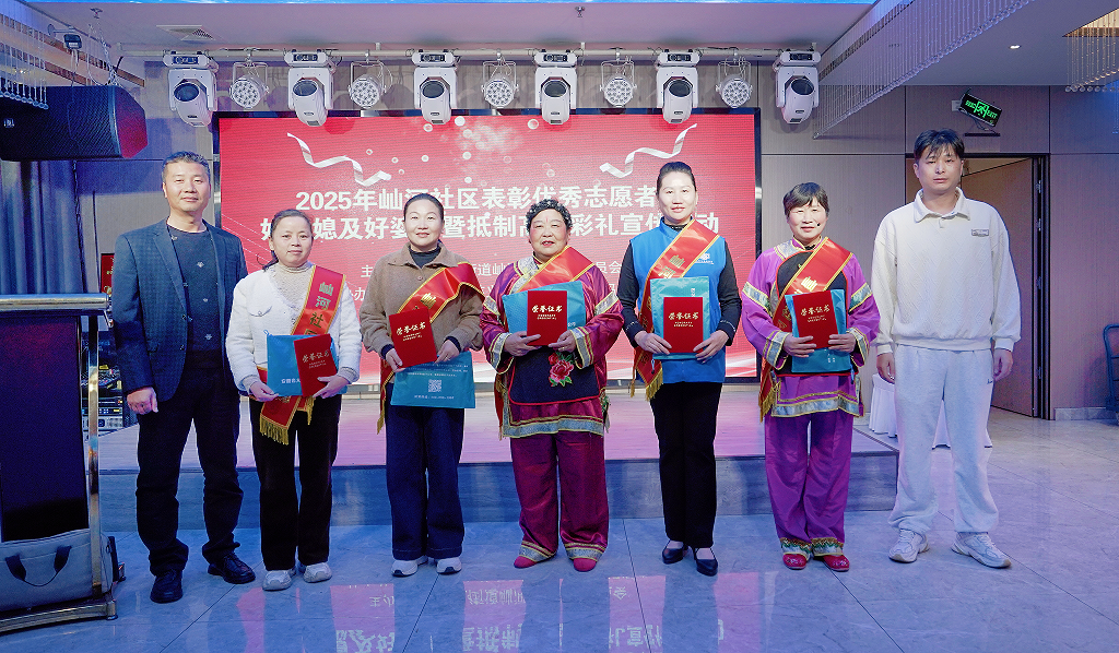 致敬榜样力量,弘扬文明新风。活动现场同步开展表彰环节,为社区正能量标杆点赞。屾河社区党总支书记陈帅首先为胡乃华、吕成平等8名2025年度社区优秀志愿者颁发荣誉证书,感谢他们以实际行动践行志愿精神,用默默奉献为社区增添温暖底色,他们的身影成为社区里最动人的风景。